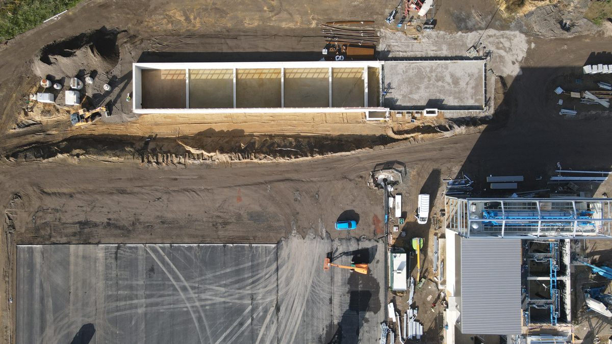 Neben der Planung des ca. 21.500 m³ großen Speicherbeckens auf dem Teilgrundstück GI4 wurden auch die gesamte Niederschlagsreinigung und -entwässerung geplant.